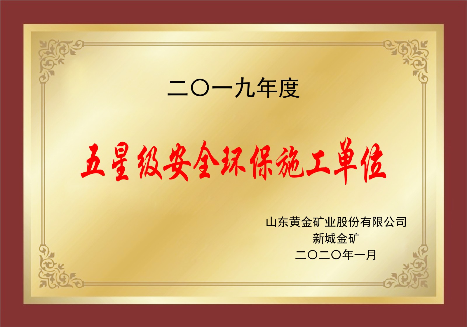 2019年度五星級(jí)安全環(huán)保施工單位