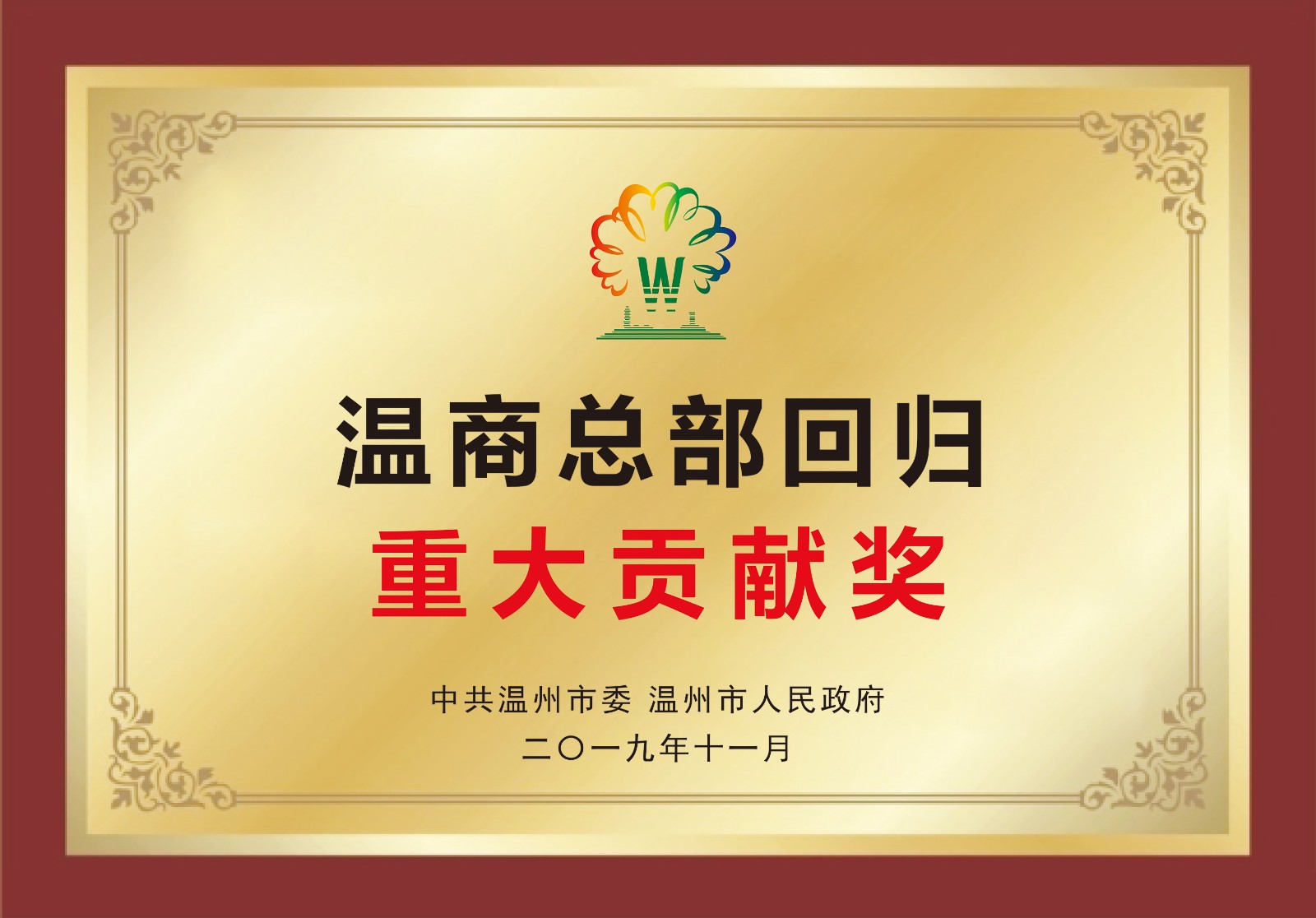 溫商總部回歸重大貢獻(xiàn)獎(jiǎng)